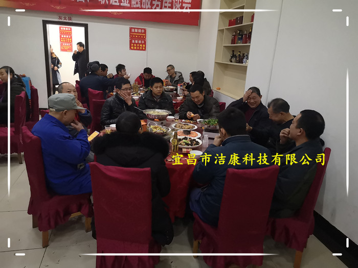 2020年的元旦即將到來,宜昌潔康為給員工更加愜意舒適的氛圍,增添公司凝聚力,特邀請所有員工一同共進公司的午餐、晚餐聚餐活動。衷心希望在此幸福的時刻,全體員工60多人相聚一起,共同祝福美好的未來。